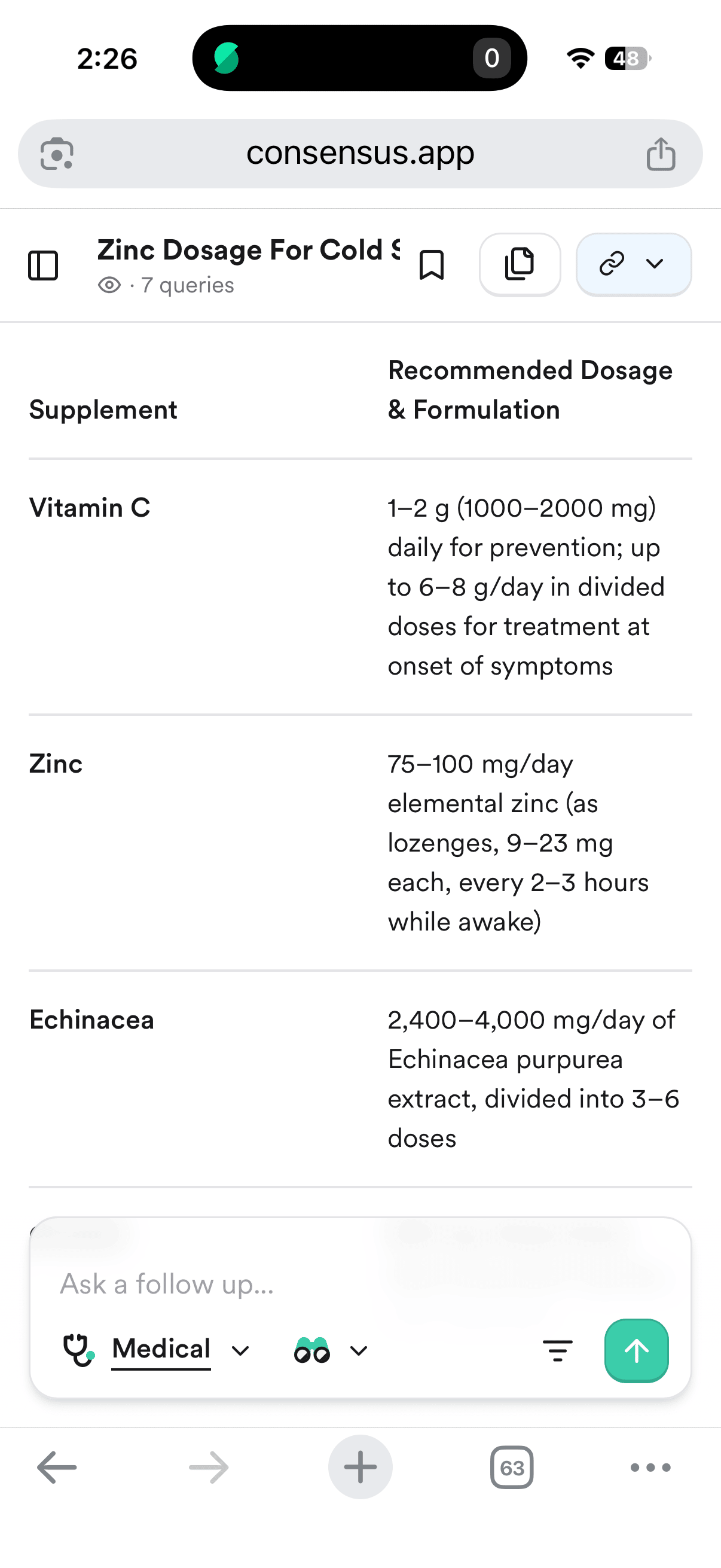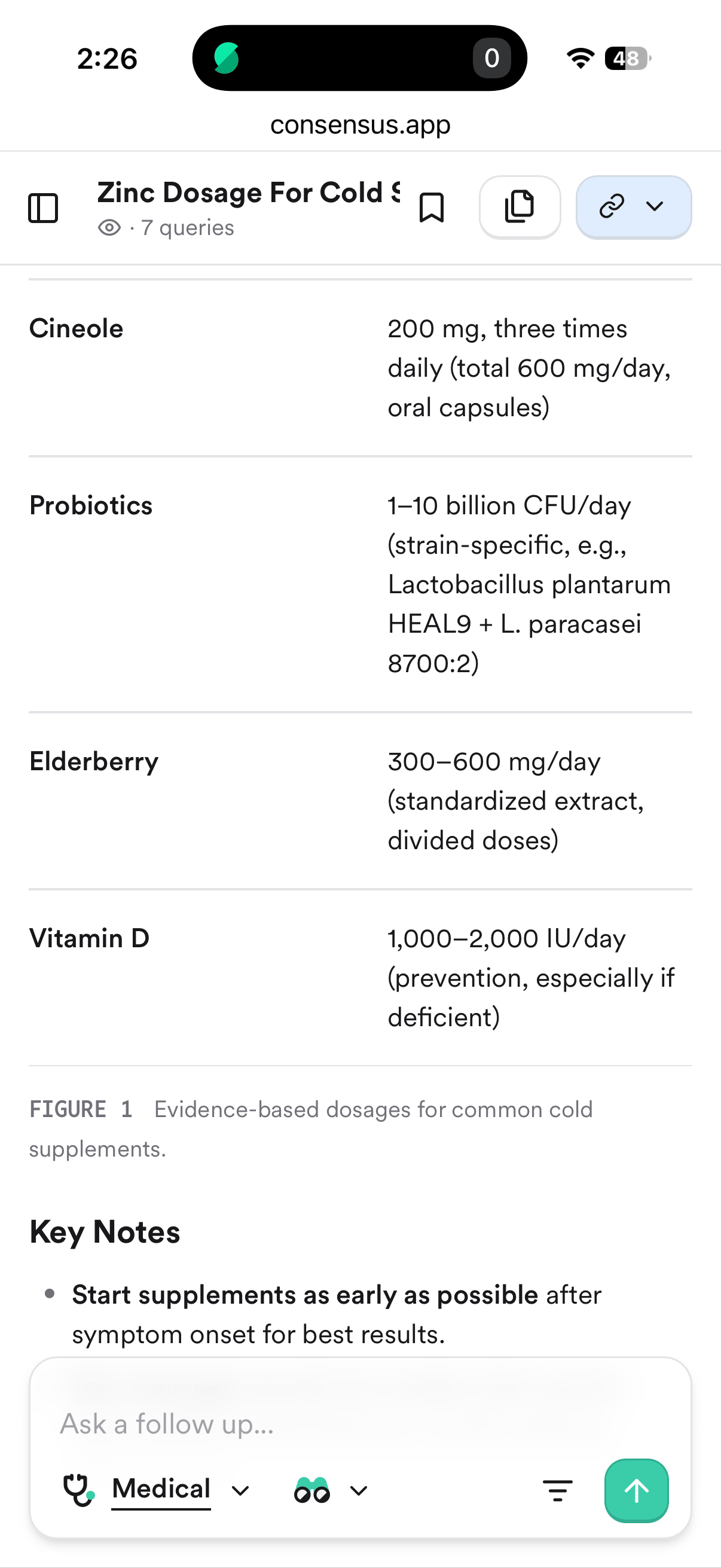 It started with a tickle in my throat. Friday morning. First sore throat of the year. I was furious. I’d made it almost twelve months without a single cold (a personal record) and now my immune system had decided to clock off early. But instead of sulking, I decided to experiment. What if I used AI to get over my cold faster? I opened Consensus.app, which scans academic journals for actual research (not influencer opinions). I set it to Medical mode (searching ONLY medical journals) and typed in: “What supplements reduce the severity or duration of a common cold?” Seconds later, it spat out a neat summary of studies where the effect size was, at a minimum, 'moderate'. I then asked it for recommended dosages, and it did the maths for me. (Check out the screenshots below if you're curious!) Next stop: Perplexity.ai. I asked it to find the highest-quality supplement brands available in Australia and where I could actually buy them nearby. Within minutes, I had a shopping list and local links. A quick trip to the chemist later, I started my AI-prescribed regimen. Result? I kicked my cold in five days (two days faster than the average recovery time). Was it the supplements? The placebo effect? Or the fact that I felt smugly proactive instead of helpless? Probably a mix of all three. But here’s the bigger point: AI isn’t just for work productivity hacks. It can help us become smarter, faster decision-makers in our personal lives too, even when we’re feeling sorry for ourselves under a doona. Cheers Amantha P.S. I’m not a medical doctor (psychological, yes; stethoscope, no). This isn’t medical advice, just me nerding out with research and AI. Always chat to an actual GP before taking any new supplements. P.P.S. Want to be the first to know about dates for our 2026 GenAI programs? Fill in this 2 minute survey and you'll be the first to know (along with getting fist dibs on some special discounts too).
